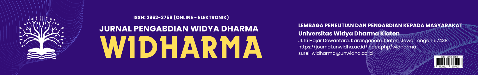 Jurnal Pengabdian Widya Dharma (WIDHARMA) diterbitkan oleh LPPM Universitas Widya Dharma Klaten ini memuat berbagai artikel ilmiah yang menyajikan implementasi disiplin ilmu yang bersinergi dengan masyarakat untuk membantu menyelesaikan permasalahan yang ada dan memberikan pelayanan pada masyarakat.